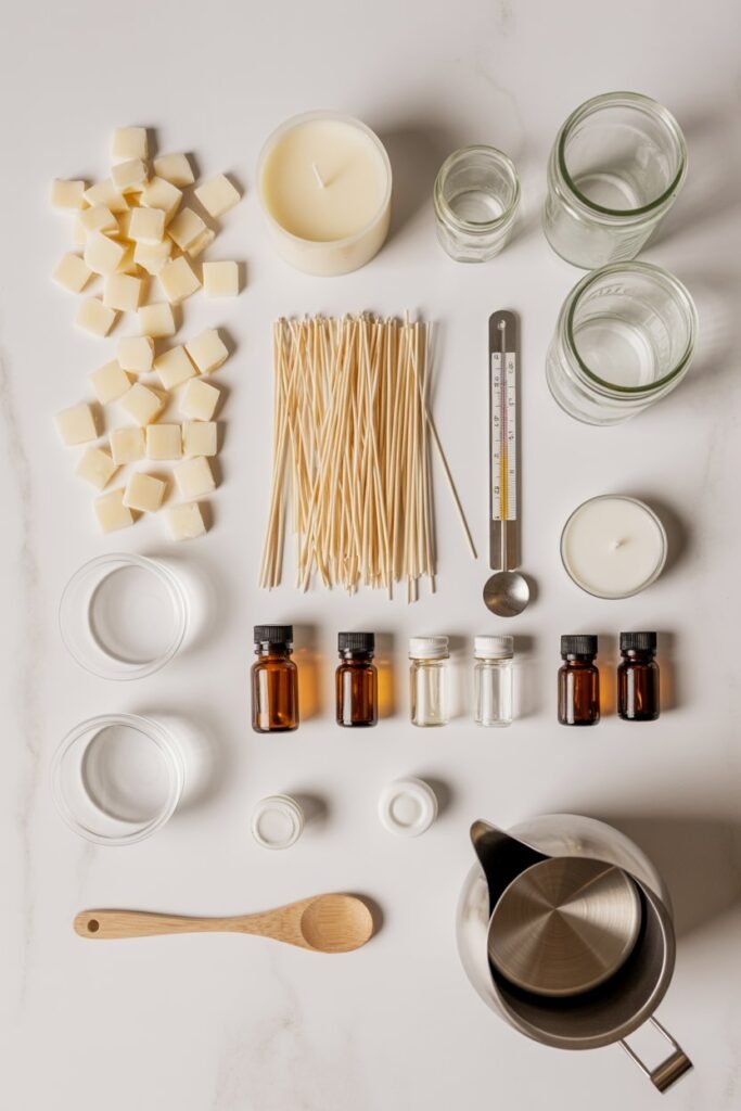 You will need soy wax flakes, which are easy to measure and melt evenly. You will also need candle wicks designed for soy candles. Choosing the right wick matters more than you might think, and I will explain that later.
