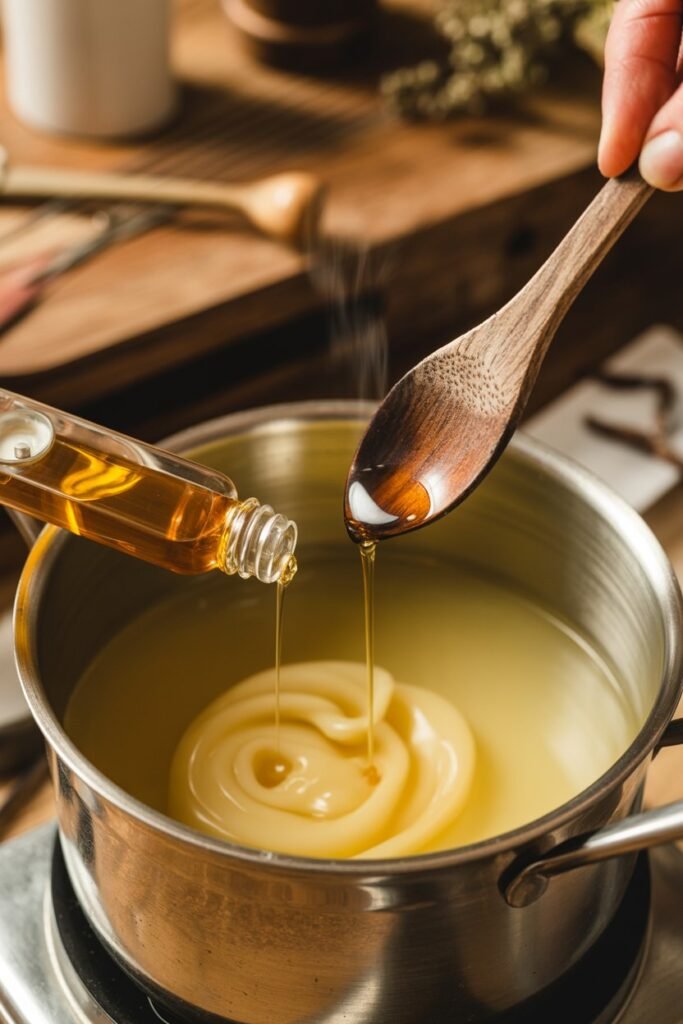I stir slowly but thoroughly for about two minutes. This helps the wax bind with the fragrance, which improves scent throw when the candle burns.
